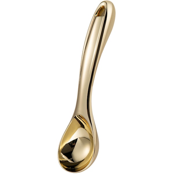 Elegant glasskula i förkromat stål med en exklusiv guldfärgad beläggning – perfekt när du vill servera glass med stil. Skeden ligger bekvämt i handen tack vare det silikonbelagda handtaget som ger ett stabilt grepp även när den används direkt från frysen.