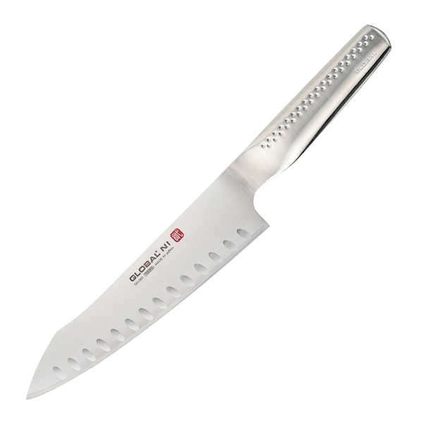 Global Ni GN-002 kockkniv 20 cm är en mångsidig och elegant kockkniv från Globals orientaliska Ni-serie. Med sin olivslipade klinga är den särskilt framtagen för att ge smidigare skärmoment, där råvarorna släpper lättare från bladet och arbetet flyter på utan avbrott.
