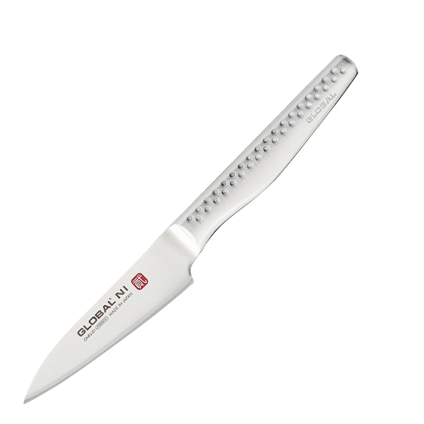 GNFS-01 från Globals orientaliska serie Ni är en liten smidig skalkniv som förenklar arbetet mellan tummen och pekfingret, perfekt till att skala och hacka små frukter och grönsaker.