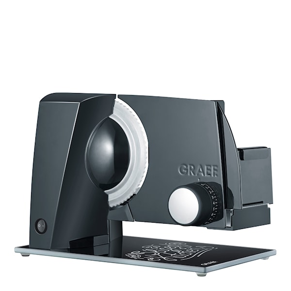 Skärmaskin från Graef, perfekt för få tunna skivor av pålägg, bröd eller ost. Justerbar skivtjocklek från 0-20 mm. Bladskydd – för mindre friktion och enklare skärning och med barnlås. Maskinen är gjord av rostfritt stål och står på en glasbotten och tack vare den kraftfulla Eco-motorn har den en låg ljudnivå.