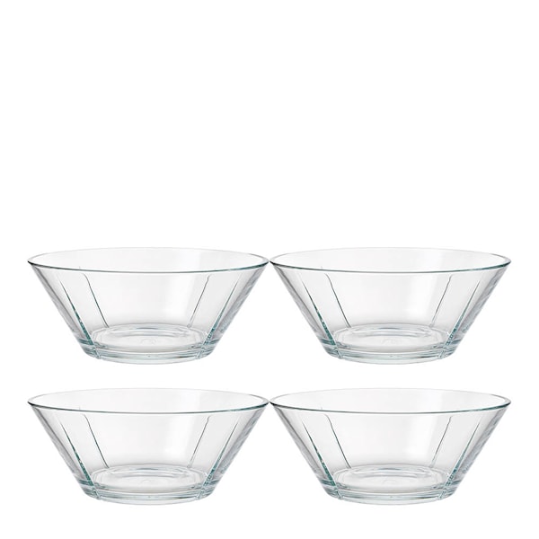 De små glasskålarna passar bra både som frukostskålar, till portionsservering och inte minst till att blanda dressing i. De här skålarna med sina raka linjer och rena design passar de flesta dukningar, oavsett stil. Tål diskmaskin.