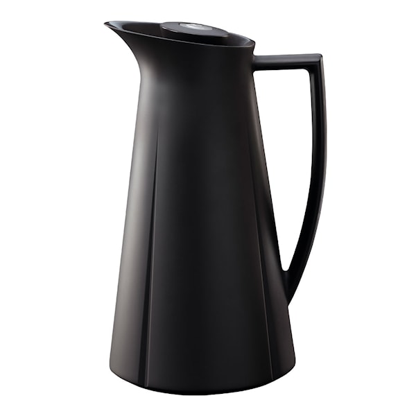 Termoskanna från varumärket Rosendahl. En testvinnare som både håller värmen och snygg design. Tryckknappsfunktionen släpper ut minsta möjliga värme vid servering och glasinsatsen med dubbla väggar ger ökad isolering.
