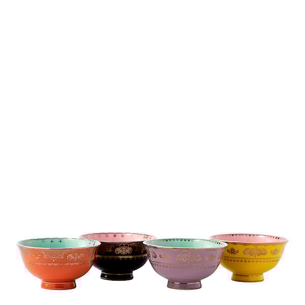 Grandpa serien är en vackert utformad serie med mycket dynamik. skålarna, som kommer i ett set om 4, har fyra olika färger. Därtill kommer gulddetaljer, som får varje dag att kännas som en fest. Använd till frukosten, desserten eller snacksen.