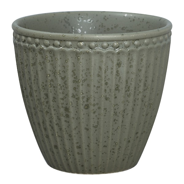 Everyday Alice lattekopp från GreenGate rymmer 35 cl och erbjuder en sofistikerad upplevelse för dig som uppskattar kaffe i vacker form. Muggens eleganta silhuett utan öra tillsammans med den generösa volymen gör den perfekt för både morgonkaffet och festliga tillfällen.