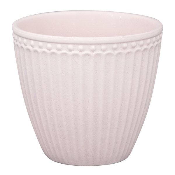 Everyday Alice lattekopp från GreenGate rymmer 35 cl och erbjuder en sofistikerad upplevelse för dig som uppskattar kaffe i vacker form. Muggens eleganta silhuett utan öra tillsammans med den generösa volymen gör den perfekt för både morgonkaffet och festliga tillfällen.