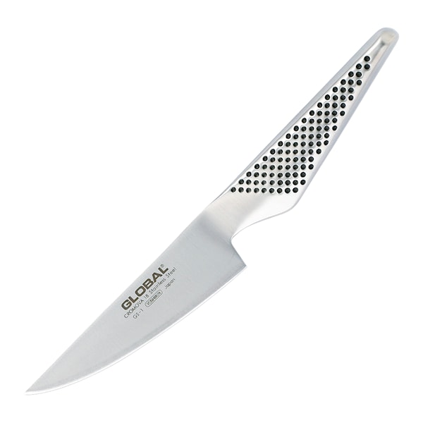 GS-1 från Global Classic är en mindre variant av den klassiska kockkniven men med uppvinklad spets. Bra till grönsaker samt till mindre bitar av t ex kött och kyckling.
