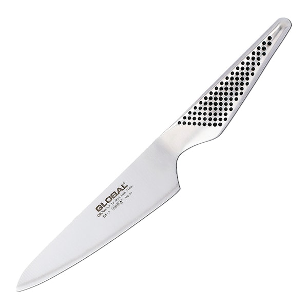 GS-3 från Global Classic är en liten och lätthanterad kockkniv som passar till alla hacka och skära grönsaker och mindre köttstycken.