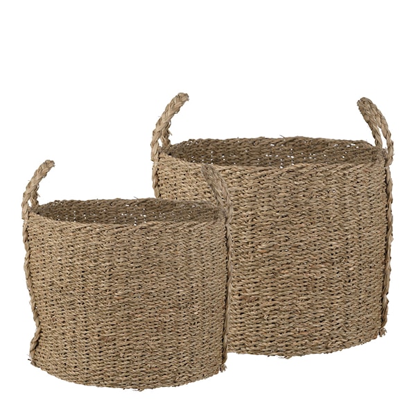 Upptäck detta stilfulla 2-pack korgar från Gus, som inkluderar korgar i storlekarna 25 cm och 20 cm. Dessa korgar är vackert flätade av sjögräs och har praktiska handtag som gör dem lätta att flytta runt. Insidan är försedd med plast, vilket gör dem perfekta för användning med krukväxter. Utöver att vara idealiska för dina växter, kan korgarna också användas för att förvara småsaker och bidra till ett organiserat och snyggt hem. Deras naturliga och tidlösa design gör dem till en elegant inredningsdetalj i vilket rum som helst.