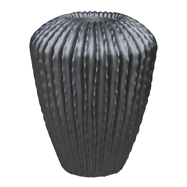 Upptäck den imponerande krukan från Gus, med en höjd på 65 cm och en elegant svart finish. Denna kruka är tillverkad i hållbart polystone och kommer med en praktisk insats som är perfekt för att plantera växter. Insatsen kan enkelt tas bort om du vill använda urnan för stora kvistar eller andra dekorationer. Med sitt tuffa, rustika uttryck och generösa storlek är denna kruka idealisk för golvplacering, vilket gör den till ett iögonfallande inslag i både moderna och traditionella inredningar. Denna mångsidiga kruka erbjuder både stil och funktion, och bidrar med en sofistikerad touch till ditt hem eller trädgård.
