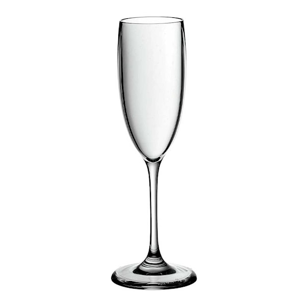 Happy Hour champagneglas från Guzzini i klar plast är ett smart val för alla tillfällen där du vill njuta av mousserande drycker utan oro för glas som går sönder. Med en volym på 14 cl passar det perfekt för både prosecco och cava. Tillverkat i Italien av slitstark SAN-plast – ett transparent och tåligt material som dessutom är BPA-fritt.