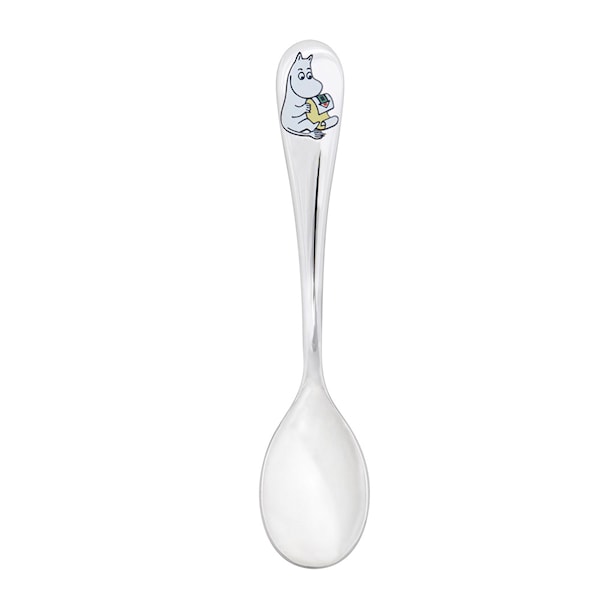 Mumindalens invånare är alltid trevligt sällskap vid matbordet, så vad kan väl passa bättre när man har fått sina första bestick och ska lära sig äta själv? Här kan du få sällskap av Mumintrollet, Snorkfröken eller Lilla My i form av en kaffe- eller tesked – perfekt till glass eller något annat riktigt gott.