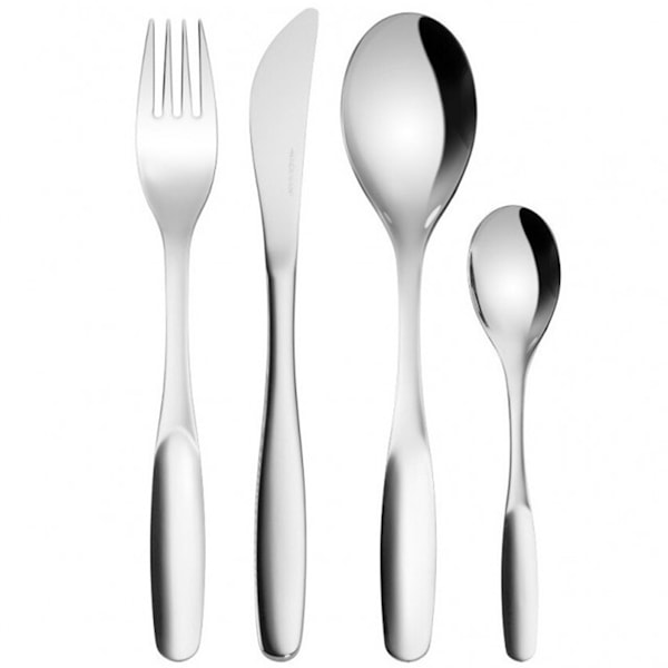 - Förpackningen innehåller 4x gaffel 19 cm, 4x kniv 19,5 cm, 4x matsked 19,4 cm och 4x kaffesked 13,2 cm