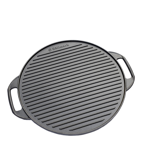 Grillhäll från Hällmark, användbar i dubbel bemärkelse. Den ena sidan är räfflad och den andra är slät, så du kan både grilla och steka. Hällen är tillverkad i gjutjärn med två rejäla handtag. Gör din matlagning utomhus både smidig och enkel. Plattan blir snabbt varm, redo att smasha hamburgare eller steka på köttbiten.