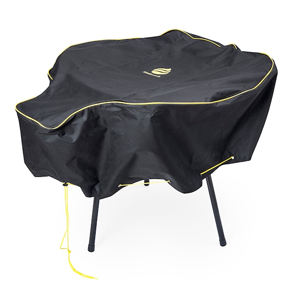 Överdrag till stekhällen från Hällmark, i bra passform och enkelt att trä på. Nedtill finns en dragsko att dra åt och Hällmarks logga pryder ovandelen. Svart tyg med en dekorativ list i gult.