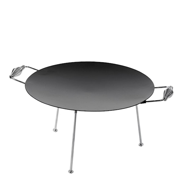 Med Stekhäll på ben 38 cm från Hällmark of Sweden får du en kompakt och mångsidig stekhäll, perfekt för utflykter och friluftsliv i mindre sällskap. Den tåliga, fabriksinoljade ytan av varmvalsat stål garanterar en lång livslängd, och hällen kan användas på gasol, grill eller direkt över eld. De tre avtagbara benen ger flexibilitet och stabilitet i olika utomhusmiljöer, och de kromade handtagen, inspirerade av klassiska vedspisar, håller sig svala för säker hantering. En produkt byggd för att hålla, komplett med Hällmarks livstidsgaranti på stekhällen.