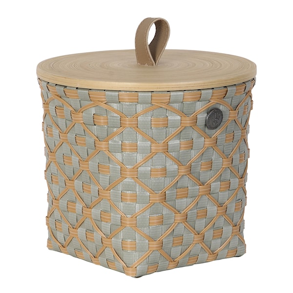 Förvaringskorgen Ivy & Rose liten 20x19 cm från Handed By förenar traditionellt hantverk med modern stil. Den ingår i den nya IVY & ROSE-serien och är handflätad i återvunnen plast.