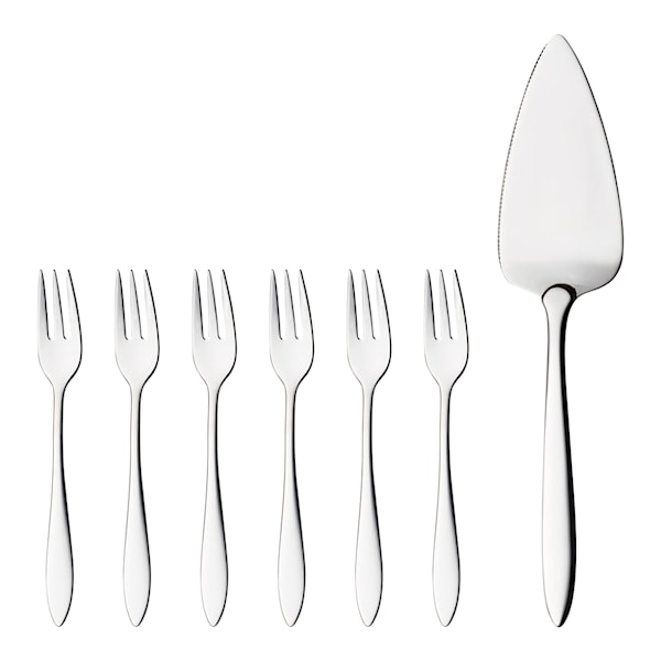 Kakset för 6 personer från Hardanger Bestikks serie Fjord. Bestickserien, som är en av Hardangers mest populära, är formgiven av Odd Leikvoll och blandar stilfullt mjuka och hårda linjer. Komplettera gärna med resterande delar ur Fjord-serien.