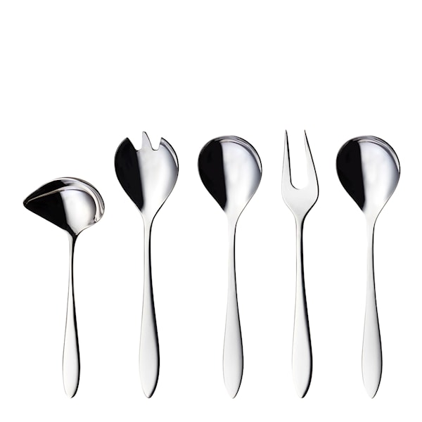 Hardanger Bestikk Fjord Serveringsset 5 delar är allt du behöver till uppläggning av sallad, kött och sås! Bestickserien Fjord, som är en av Hardangers mest populära, är formgiven av Odd Leikvoll och blandar stilfullt mjuka och hårda linjer. Komplettera gärna med resterande delar ur Fjord-serien.