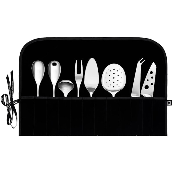 Besticklinda för 8 serveringsdelar i Hardangerserien från Hardanger Bestikk är en smart, praktisk och elegant lösning för att hålla dina serveringsdelar i perfekt skick. Denna bestickpåse har 8 fickor och är tillverkad av ett mjukt syntetiskt material som liknar velour. Den kan rullas ihop och stängas med ett tygband, vilket gör den både praktisk och skonsam för förvaring av bestickserier, tilläggsdelar och köksredskap. För att säkerställa bästa möjliga vård bör alla serveringsdelar vara helt torra innan de placeras i påsen.