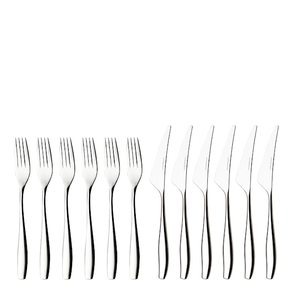 Julie Grillbestick 12 delar designade av Per Finne 2009 för Hardanger Bestikk. Serien Julie kännetecknas av de elegant rundade form men i setet med grillbestick är knivarna något spetsigare och är anpassade för att smidigt skära i kött. Komplettera gärna med andra delar ur serien för att duka enhetligt.