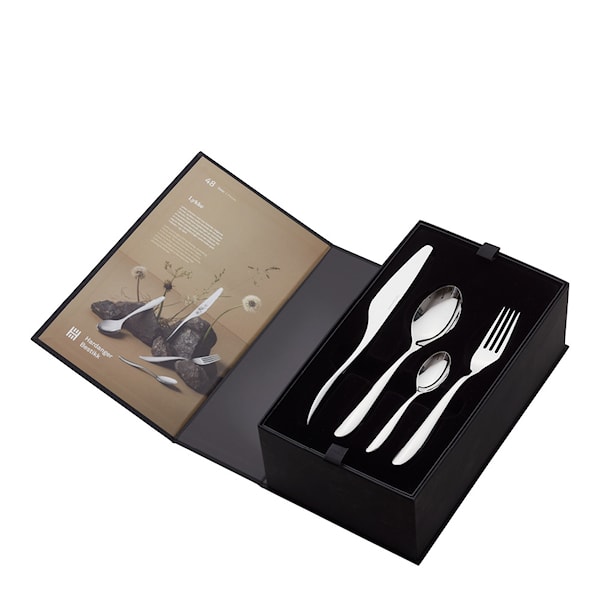 Lykke Bestickset 48 delar, designat av Odd Leikvoll år 2013, erbjuder en perfekt kombination av funktion och estetik. Setet består av 48 delar och har en unik balanspunkt samt strama, rena linjer som utformats med tanke på grepp och korrekt borddukning. Den polerade finishen ger ett elegant utseende, och allt levereras i en stilfull presentförpackning.
