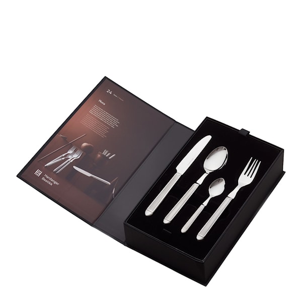 Detta bestickset levereras i en vacker presentask, vilket gör det till en utmärkt gåva vid bröllop, födelsedagar eller andra högtider. Dessutom är Nora-serien enkel att underhålla, eftersom den tål maskindisk och är konstruerad för att klara av daglig användning utan att förlora sin lyster.