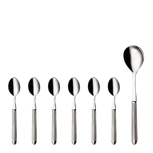Dessertset från den robusta och ikoniska Nora-serien. Designad av Odd Leikvoll 2001. Serveringsskeden har ett greppvänligt handtag och bra djup för smidig servering. Dessertskeden är större, längre och djupare än en vanlig tesked. Levereras i presentförpackning.
