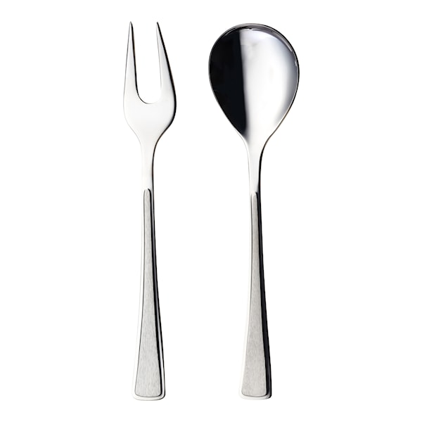 Serveringsset i 2 delar från Hardanger Bestikks serie Ramona, formgiven av Odd Leikvoll år 1982. Sedan lanseringen har bestickserien blivit en av Hardangers absoluta bästsäljare med sina eleganta detaljer av borstat stål.