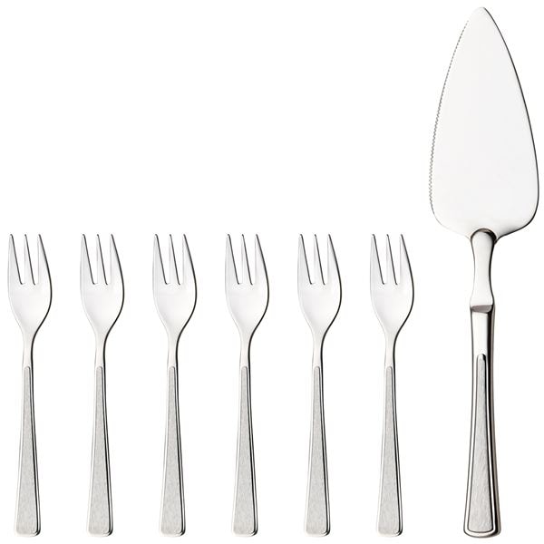 Tårtsetet från den folkkära och ikoniska Ramona-serien av Hardanger Bestikk kombinerar enkelhet med elegans. Med sina borstade ytor och raka kanter balanserar besticket mellan att vara både funktionellt och dekorativt. Setet inkluderar en fintandad tårtspade för en exakt skärkant och sex tårtgafflar där de yttersta tänderna är bredare för att enkelt kunna dela kakstycket med precision. Tillverkat av högkvalitativt 18/10 rostfritt stål, är besticken diskmaskinssäkra och levereras med livstidsgaranti. Tårtsetet kommer i en elegant presentförpackning och innehåller: