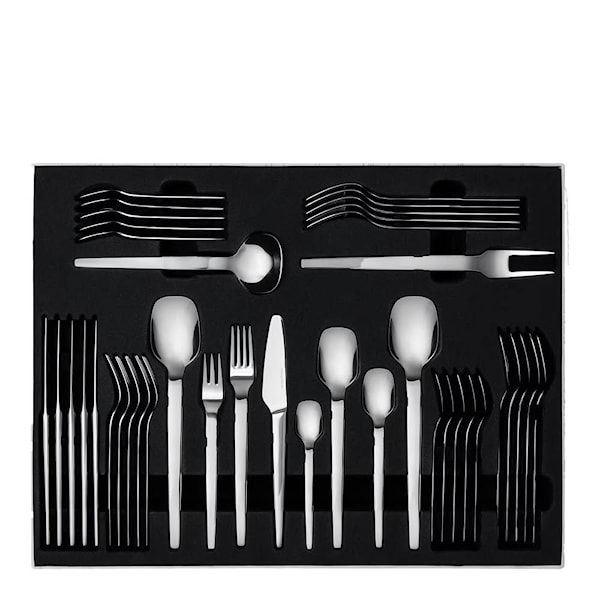 Tina bestickset med 40 delar från Hardanger Bestikk är formgivet för dig som uppskattar rena linjer, funktion och tidlös design. Setet innehåller både mat- och serveringsbestick för sex personer och har ett balanserat uttryck med mjuka, geometriska former.