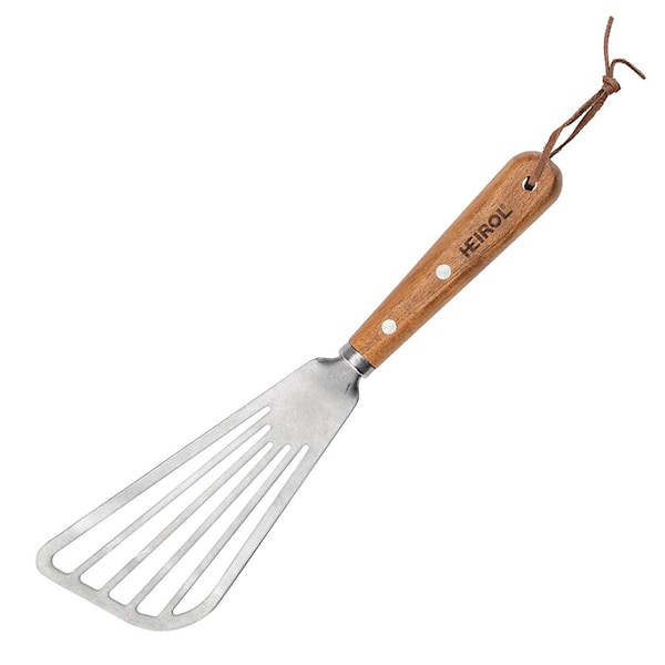 Klassisk stekspade i rostfritt stål med antik finish som ger en vacker patina. Handtaget av bokträ ligger bra i handen och har en praktisk rem högst upp för upphängning. Kommer med största säkerhet bli ett mycket omtyckt köksredskap, både till vardags och fest.