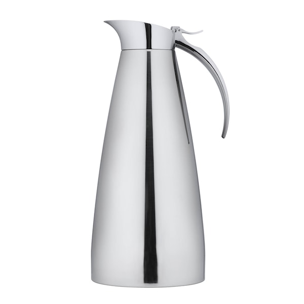 Heirol termoskanna i rostfritt stål rymmer 1 liter och är skapad för att göra serveringen enkel och silfull. Med ett praktiskt handtag och ett lock som öppnas med en tryckknapp kan du hälla upp drycken bekvämt med en hand.