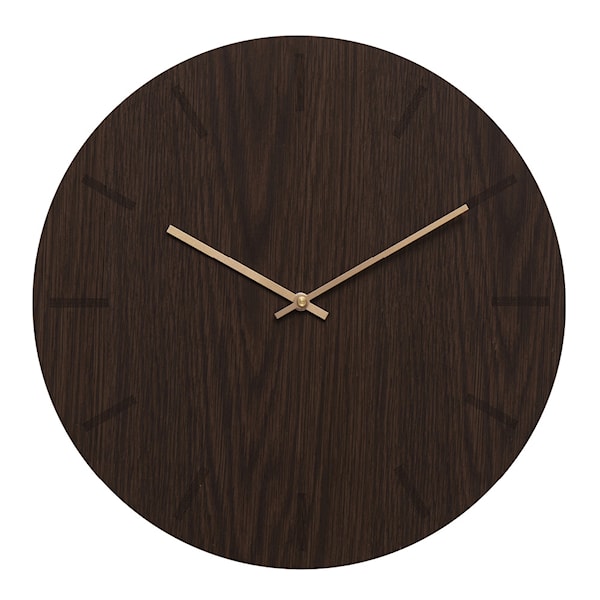 Kopparvisarna tillför en varm glöd som skapar en vacker kontrast mot det mörka träet, perfekt för moderna nordiska hem som vill ha en subtil touch av lyx på väggen. Om du önskar en annan stil kan du välja en annan färg på visarna och anpassa klockan efter din personliga smak.