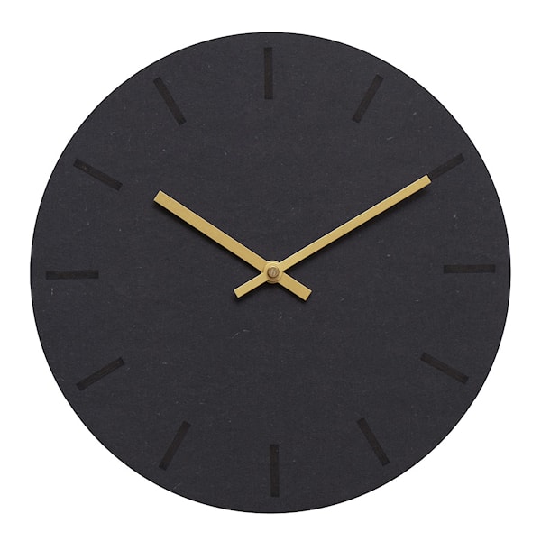 Gunpowder väggklocka från Hemverk kombinerar en rå och minimalistisk stil med en sofistikerad touch. Den 28 cm stora klockan har en rund urtavla i mörkgrå, genomfärgad MDF med en melerad, matt yta som ger ett modernt och robust intryck. Guldfärgade visare tillför en subtil värme och elegans som skapar en vacker kontrast mot den svarta bakgrunden.