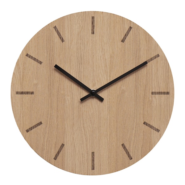 Light Oak väggklocka från Hemverk är en stilren klocka på 28 cm, tillverkad av ljust ekträ med svarta visare som skapar en tydlig och elegant kontrast. Klockan har en minimalistisk design med nordisk känsla och passar sömlöst in i moderna hem.
