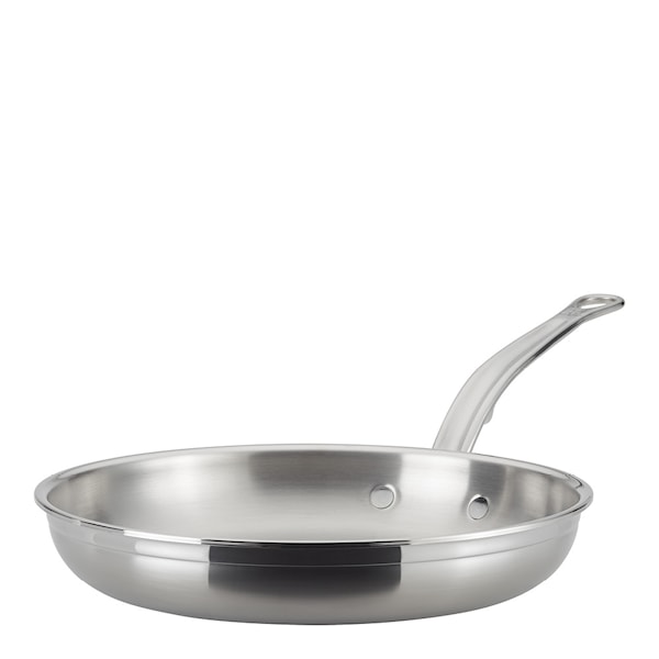 Med en tre-lagers konstruktion och en lyhörd kärna av rent aluminium ger denna stekpanna överlägsen bryning och jämn uppvärmning. Dess ergonomiska handtag är säkert fästa med infällda nitar, vilket ger dig ett bekvämt och säkert grepp vid matlagning eller servering.