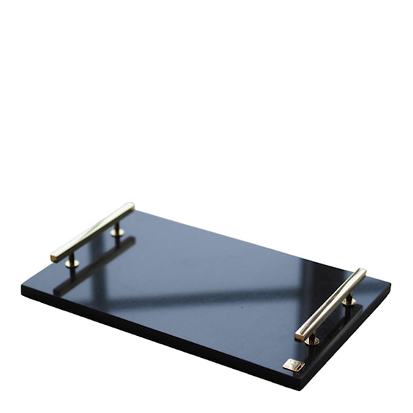 Förgyll serveringen med exklusiv bricka i granit från Hilke. Granitens naturliga mönster ger varje bricka ett unikt uttryck och den högblanka ytan speglar vackert handtagen i solid metall. Välj mellan mässing och förnicklad mässing. Passar utmärkt att servera läckerheter som snittar och ett glas bubbel med, eller duka fint med frukost på sängen.