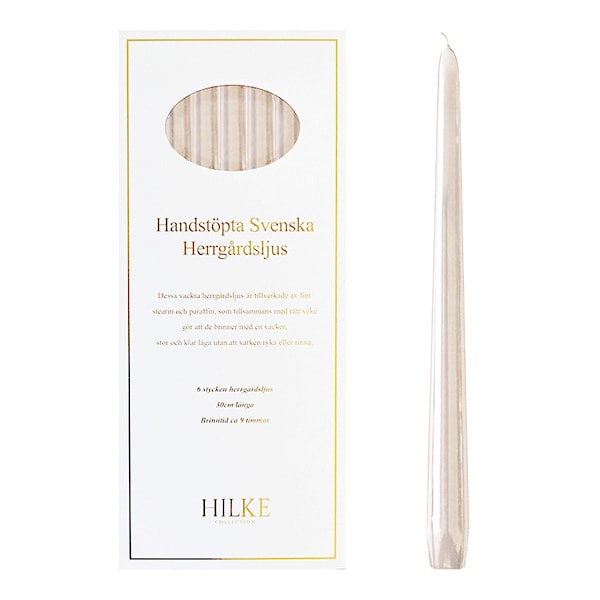 Handstöpta herrgårdsljus i regnbågens alla färger, bara att välja din favorit! Ljusen är tillverkade av fint stearin och paraffin, som tillsammans med rätt veke gör att de brinner med en vacker, stor och klar låga utan att varken ryka eller rinna. Trimma veken innan varje användning för bästa resultat.