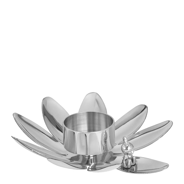 Mumin Näckros med Lilla My är en elegant ljusstake i förnicklad mässing från Hilke Collection, framtagen som en del av Mumin 80-kollektionen. Inspirerad av Tove Janssons första bok, där Mumin färdas på en näckros, bär designen budskap om inre frid och trygghet.