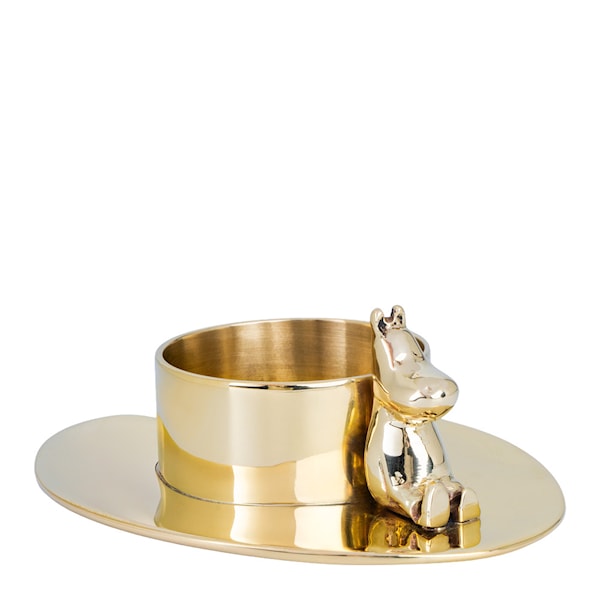 Ljusstaken är tillverkad i massiv mässing med mjuka organiska former och en varm gyllene yta som sprider ro. Ett samarbete mellan Hilke Collection och Mumin 80 där designen får berättelsen att lysa.