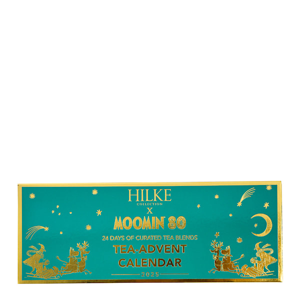 För att fira Muminvärldens 80-årsjubileum presenterar Hilke en exklusiv te-julkalender som förenar smak, nostalgi och berättarglädje. Varje dag fram till jul bjuder på en ny Muminfigur, tillsammans med en noggrant utvald teblandning som speglar karaktärens unika personlighet. Från Muminmammas lugnande värme till Lilla Mys kryddiga energi – den här kalendern tar dig med på en smakresa genom Mumindalen.