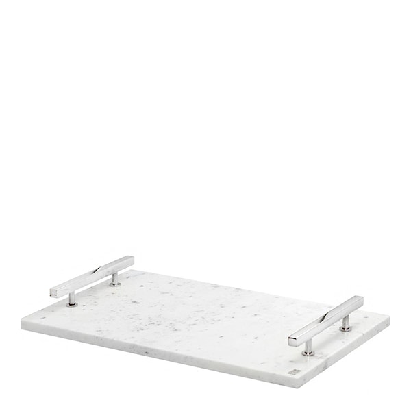 Elegant marmorskiva med handtag i mässing eller förnicklad mässing - lika funktionell som dekorativ! Brickan är perfekt som uppläggningsfat eller att ställa ljus på.
