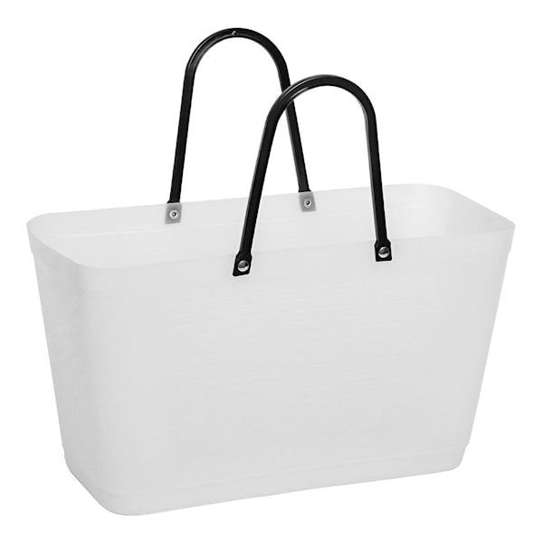 Hinza är en praktisk väska i unik design från 50-talet, tillverkad i Hillestorp, Småland. Materialet är återvinninsgsbar polyetenplast, som är både hållbart och enkelt att rengöra.