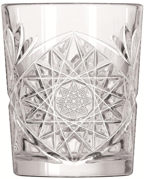 Hobstar double old fashioned glas passar utmärkt till whisky eller som vanligt vattenglas. Tillverkat i härdat glas med en viss tyngd som gör att de tål att användas. Glaset har ett mönster som gör att vilken drink du än har i glaset reflekteras snyggt.