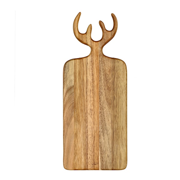 Denna serveringsbricka från Holm, tillverkad av akaciaträ, kombinerar praktisk funktionalitet med en elegant design. Med måtten 44x18x1,5 cm och ett handtag formgivet som horn är brickan både dekorativ och enkel att hantera. Perfekt för servering av tapas, ostar, förrätter eller som en skärbräda vid matlagning.