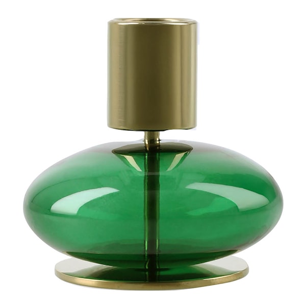 Bubble ljusstake liten på 8 cm från Holmegaard är både dekorativ och funktionell. Munblåst i jadegrönt glas och kombinerad med en elegant mässingslook – en hyllning till design och hantverk genom 200 år.
