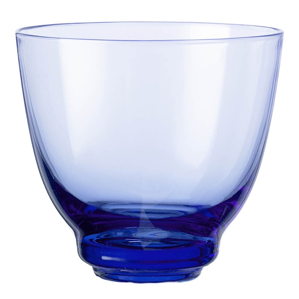 De nya mörkblå glasen kan stå ensamma eller kanske ännu bättre – användas i kombination med de andra färgade glasen i serien. Vackert kvalitetsglas från Holmegaard är för alla och gjorda för att användas – även till vardags – och vattenglaset har en härlig tyngd i botten som gör att det både står stabilt på bordet och ligger bra i handen, även om foten snävar in lite. Som en unik hantverksmässig egenskap är kanten på Flow-glaset flampolerad, vilket ger en snyggt rundad kant som också gör glaset extra behagligt att dricka ur.