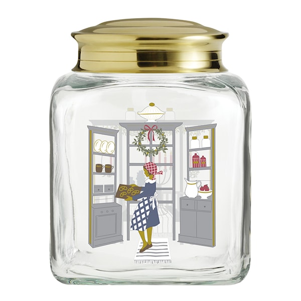 Den 16 cm höga och mycket dekorativa kakburken är både estetisk och praktisk för årets bakverk och får gärna stå framme på köksbordet som en juldekoration i sig. I 2024 års motivuniversum tar Jette Frölich oss med in i hemmets hjärta: köket. I december är det här magin sker när man bakar julkakor och lagar julmat – dofter och smaker som vi har längtat efter sedan förra julen.