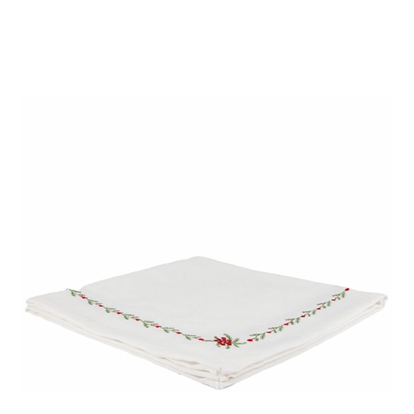 Med sin vita bottenfärg och subtila broderidetaljer i grönt och rött skapar Julia tygservett en klassisk julkänsla med en diskret och smakfull ton. Perfekt både till vardags och vid festliga tillfällen där detaljerna gör skillnad.