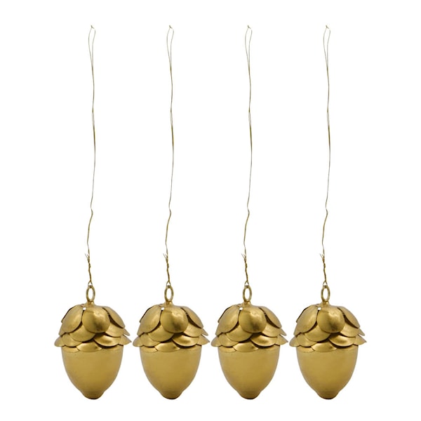 Julgranshängen i form av små guldfärgade ekollon i diskret design. Hängena är tillverkade av metall och försedda med en upphängningsögla.
